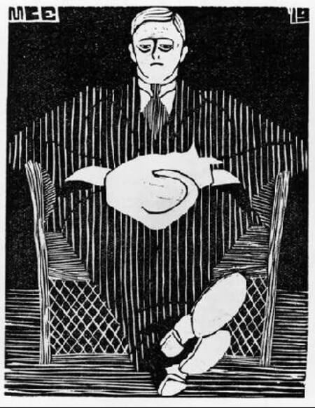 Сидящий мужчина с кошкой на коленях Мауриц Корнелис Эшер, 1919 / Ограничение круга II Мауриц Корнелис Эшер, 1959