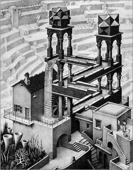 Относительность Мауриц Корнелис Эшер, 1953 / Водопад Мауриц Корнелис Эшер, 1961