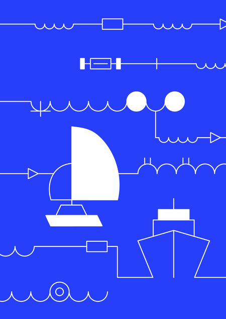Айдентика для соревнований радиоуправляемых корабликов на Северном Речном вокзале. Графика стиля состоит из радио волн, которые в какой-то момент начинают вырисовывать морские элементы