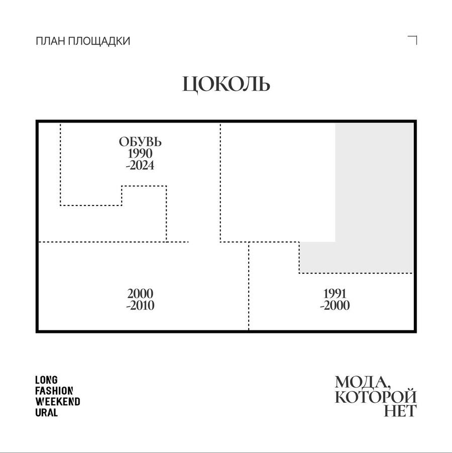 Цоколь — зал 1991–2000 годов — зал 2000–2010 годов — обувной зал 1990–2024 годы