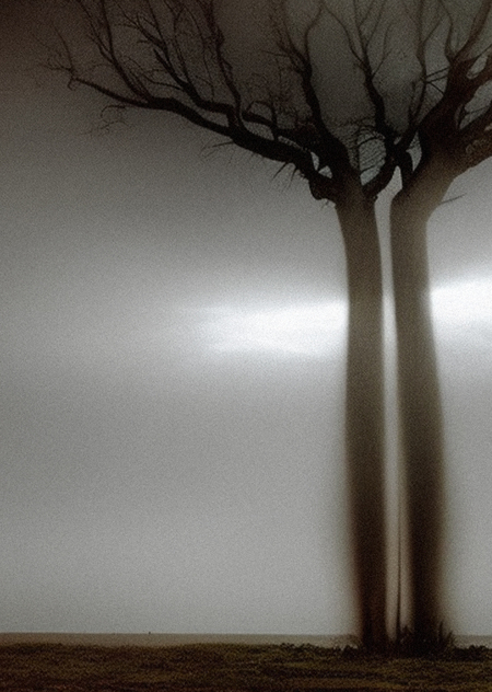 Серия состоит изображений, сгенерированных нейросетью. За основу взяты образы из мимолётных видений обмороков, перенесённых в разных обстоятельствах. Каждое из видений представляло образ дерева, мистического места или неразличимой сущности. Нейросеть интерпретировала запросы с деревьями, местами и сущностями по-своему, придавая одним и тем же образам различные смыслы и эмоции.