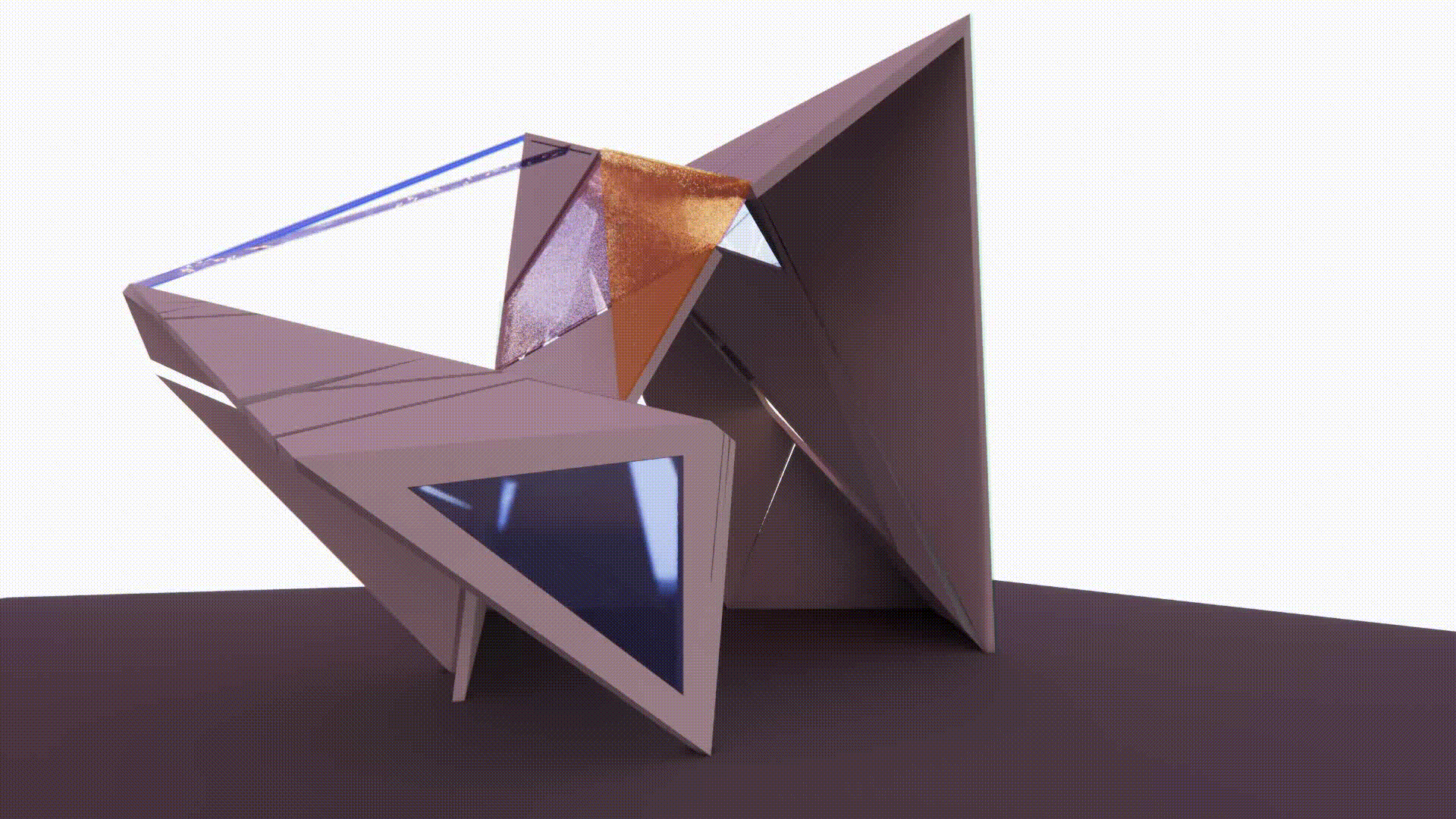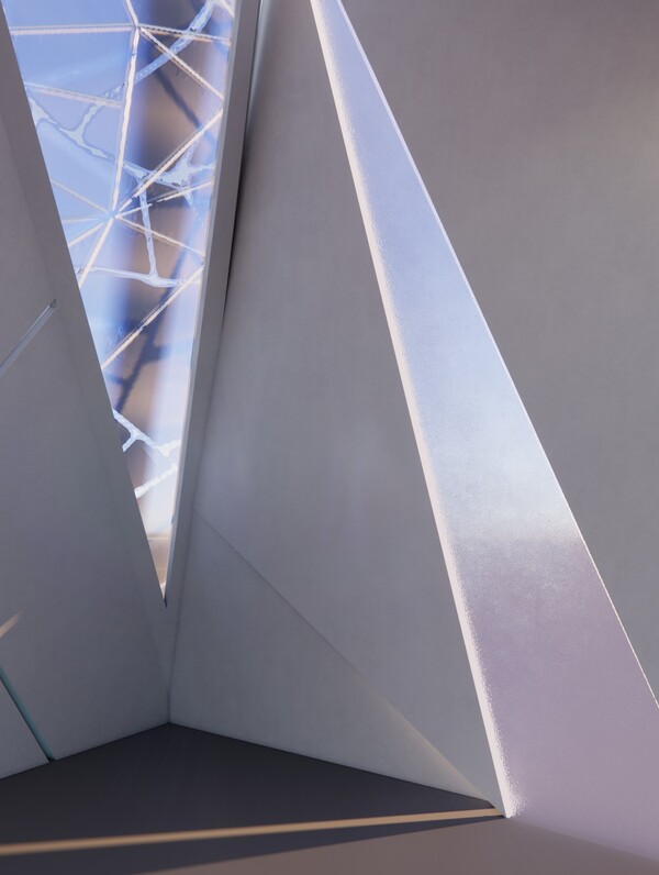 Арт-объект выполнен в духе мастера: он построен из геометричных, острых форм, одновременно разворачивая перед зрителем динамичную игру светотени. Ход времени позволяет увидеть неуловимый рисунок света и его чувствительность к изменениям среды.