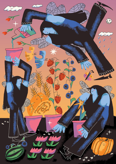 Series of illustrations for the calendar with the star signs. Compositions are based on the symbol of the sign according to its element — fire, water, earth, or air.
