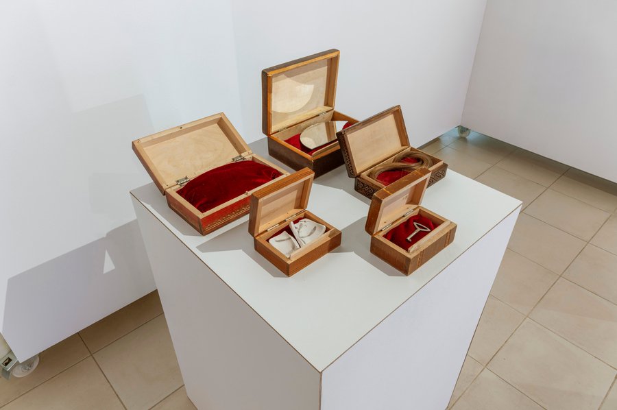 Пограничная, связывающая между собой обе части выставки работа, главными смысловыми ориентирами которой становятся практика хранения самого ценного в небольших девочковых шкатулках и (не)готовность отпускать проходящее.