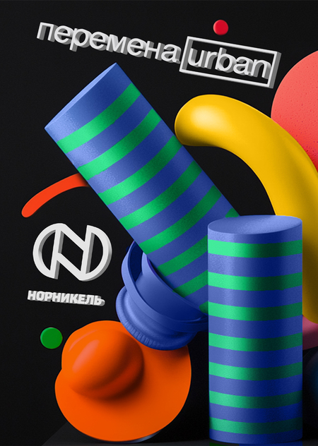 The change of Urban is a social project of Nornickel’s successful urban presence. Change is a project of societal change in the context of career guidance for students, students and their parents. A series of training, internships and city quests. The logo is based on a modular grid, like a system that combines different areas of change in the city with linkages to key areas of society. The bright identics, which become massive for integration into the urban environment, bring about changes. A metaphor for change that is achievable and can be touched.