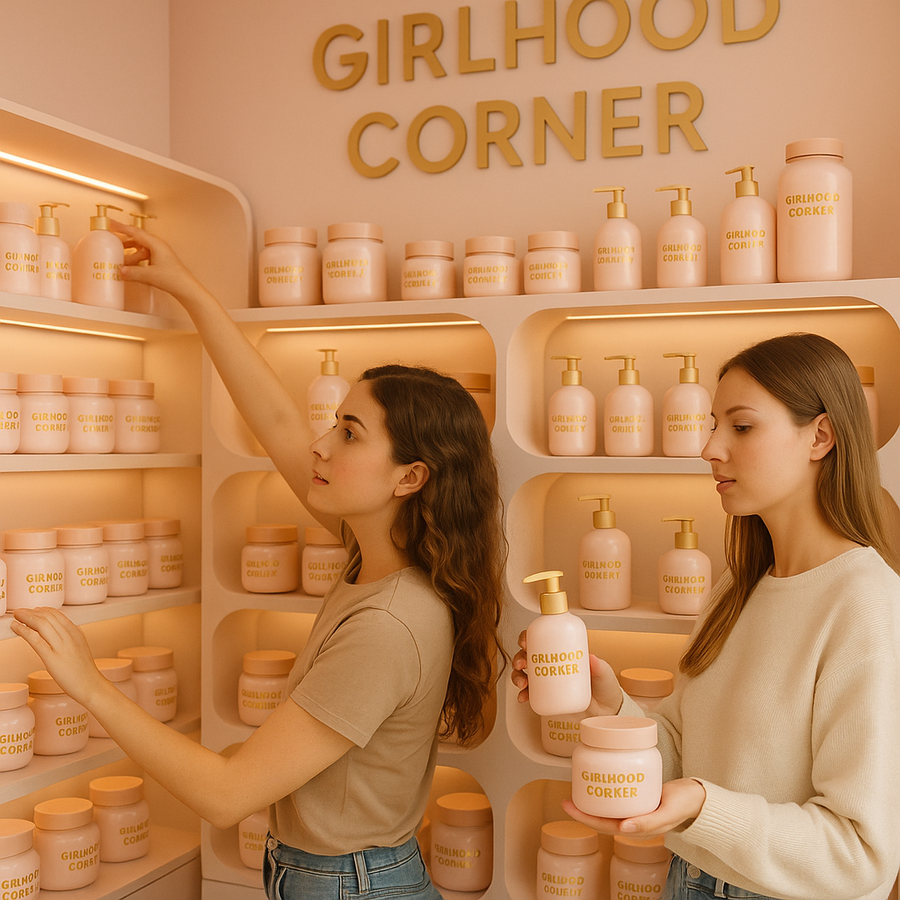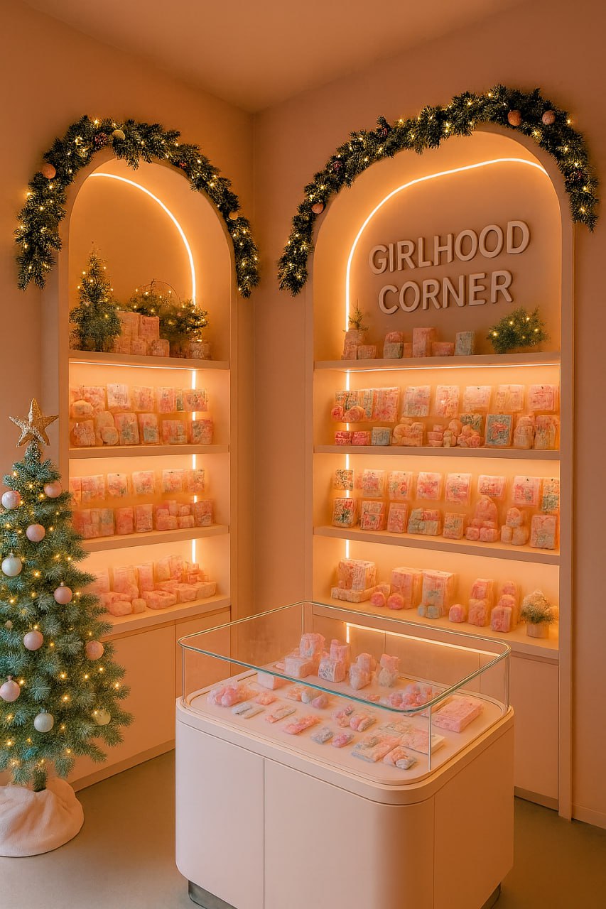 The corner functions as a micro-space inside the city — a soft, intimate environment that allows visitors to momentarily slow down, explore objects, and reconnect with feelings of care and nostalgia. Rather than a traditional store, Girlhood Corner operates as a curated installation where everyday items are presented as meaningful and emotionally charged artifacts.
