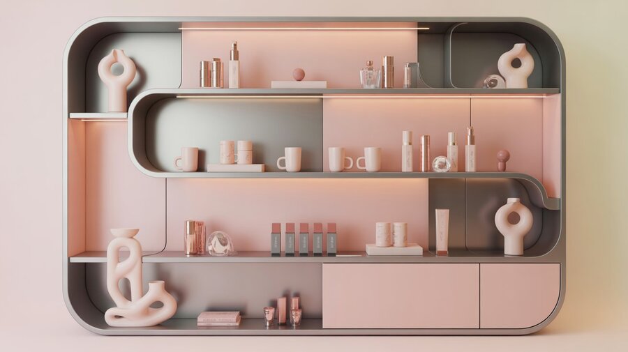 Any design object — interior space, shelf system, product display, packaging, or visual identity — functions as a message that the audience interprets through personal experience, cultural background, and visual literacy. The semiotic tradition explains how visual signs work: color acts as an emotional trigger, shape as a symbolic form, material as a carrier of meaning. Rounded forms suggest softness and safety, glossy surfaces reference playfulness and artificial sweetness, while scale influences intimacy.