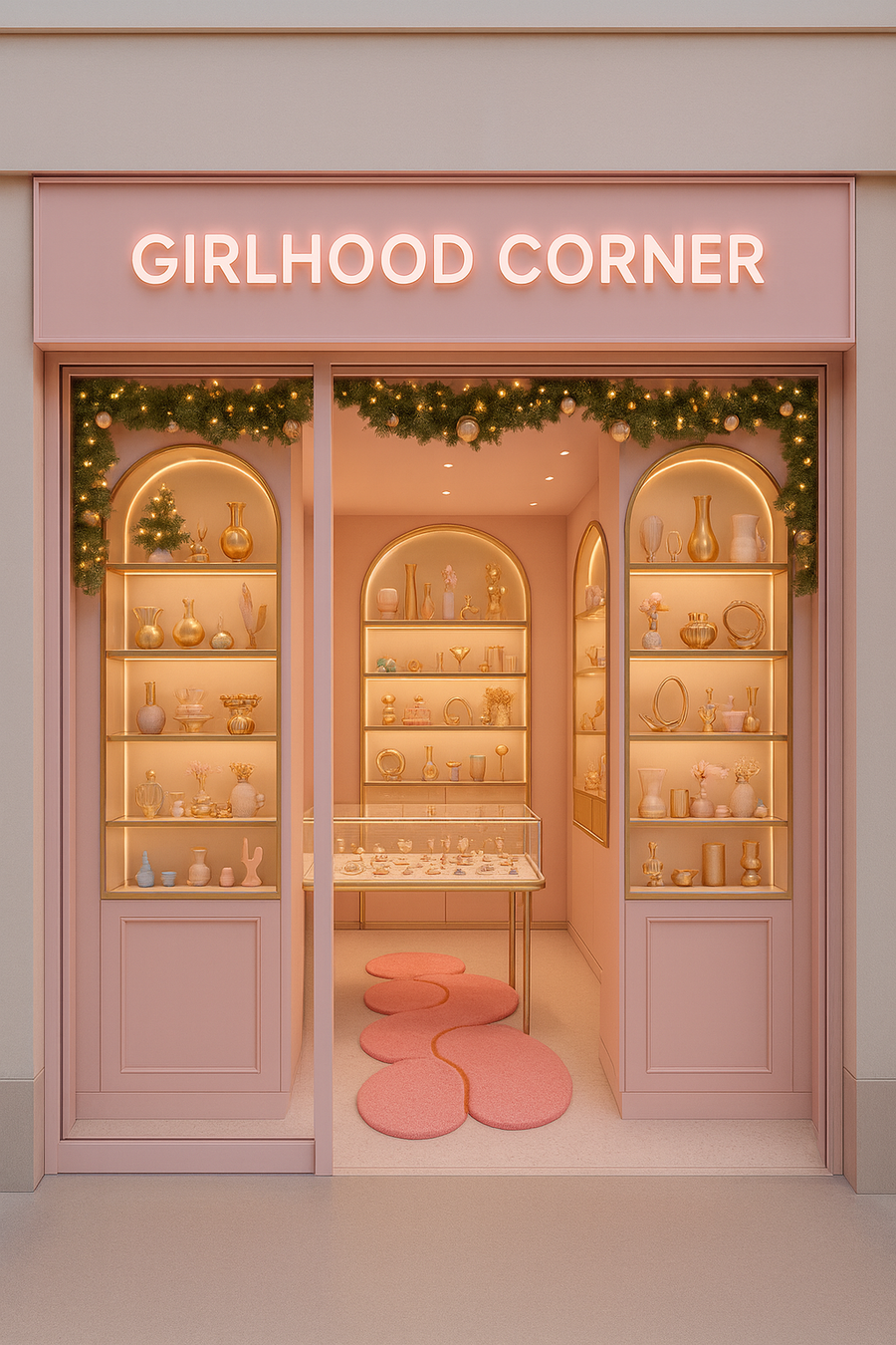 For designers and creative professionals, Girlhood Corner operates as a coherent communication system where space, objects, and materials function as interconnected signs.