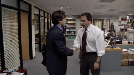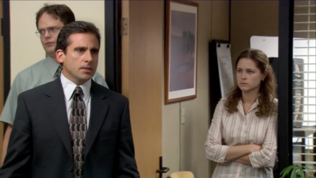 Одной из самых трогательных сцен является момент ухода Майкла Скотта из компании: ему нужно попрощаться со всеми сотрудниками, которые стали так дороги и близки, но он не знает как это сделать, поэтому решает сделать вид, будто уезжает в другой день. Лишь Джим и Пэм знают, что это не так. Сцена их прощания обходится не без слез и слов о том, что Майкл был лучшим боссом.