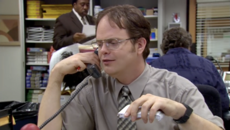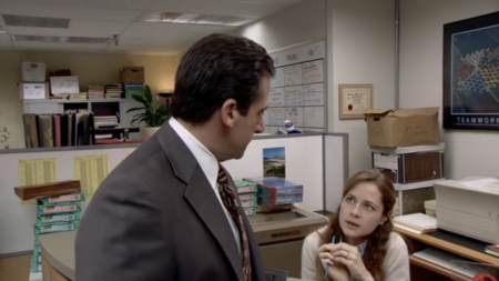 Дуайт сопереживает Пэм и пытается поддержать ее (кадр из 3 сезона)