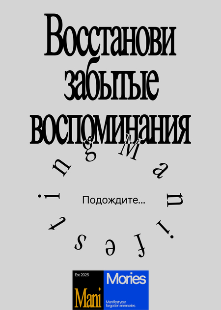 Прикрепить карточку Кинотеатр забытых воспоминаний «ManiMories» — это возможность пересмотреть различные моменты из своей жизни по-новому и переосмыслить прошлое. Благодаря AI и работе с вашим сознанием/подсознанием теперь возможно рассмотреть любую ситуацию из вашей жизни в мельчайших подробностях. Айдентика сочетает в себе столкновение прошлого с технологиями, создавая нечто современное и ностальгическое