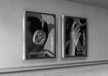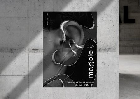 Visually, the brand identity balances modern minimalism with symbolic motifs connected to magic and metamorphosis. The magpie image functions as a recognizable metaphor: a playful reference to desire for shine, reinterpreted through the idea of conscious choice. Material cues (metal texture, fluid forms, traces of melting) reinforce this concept and connect visual language to production reality.