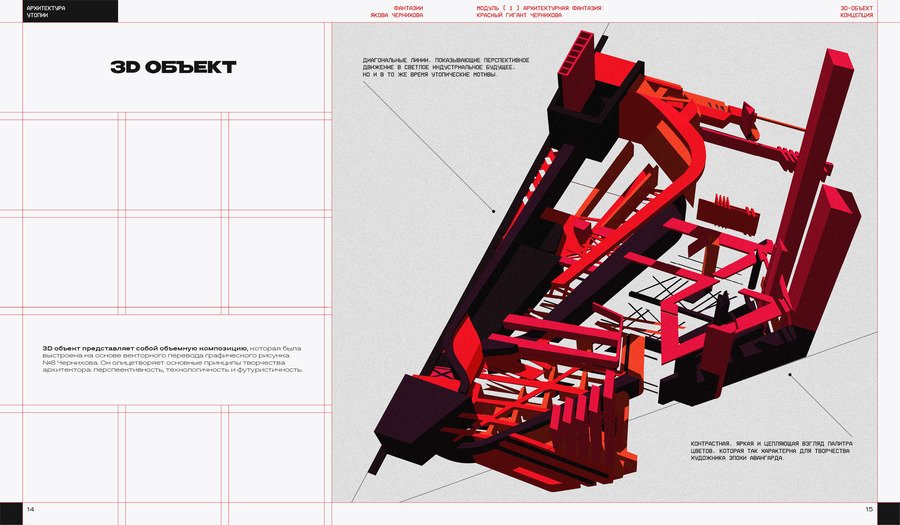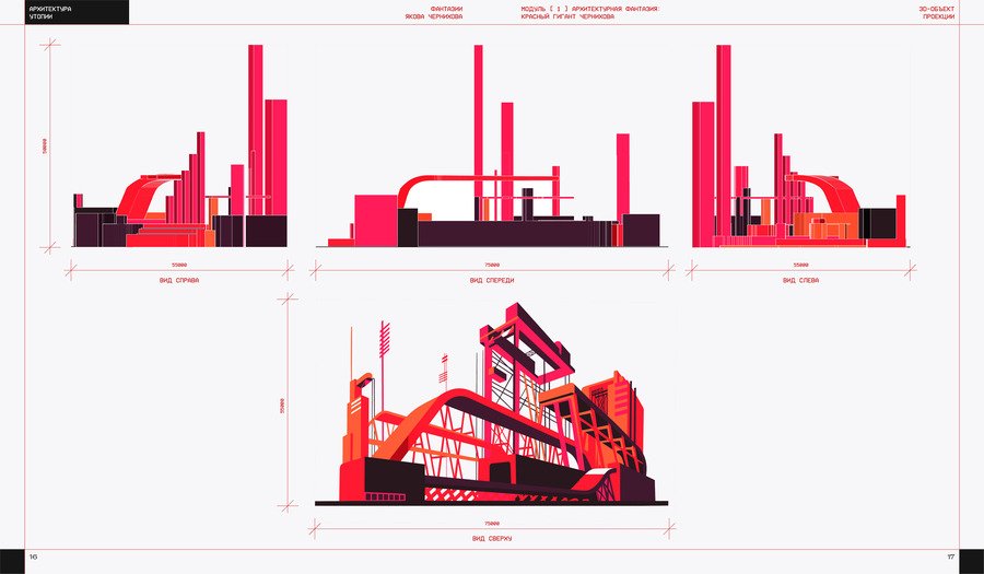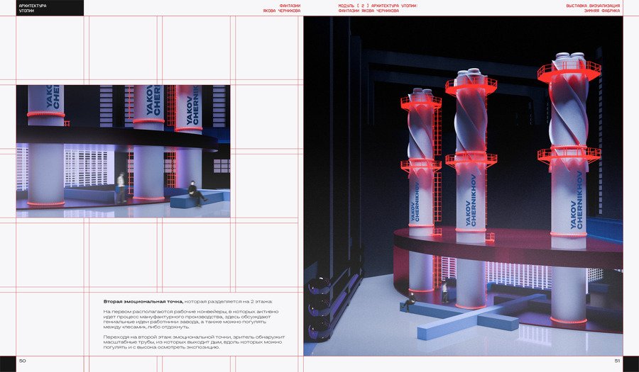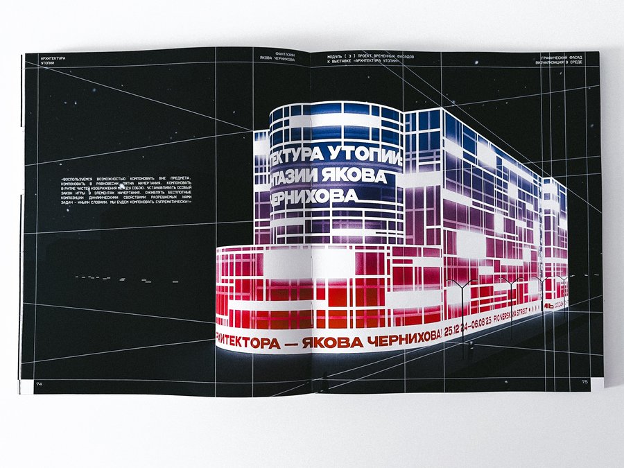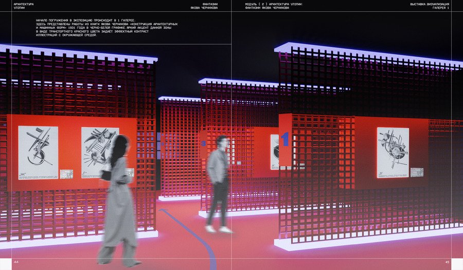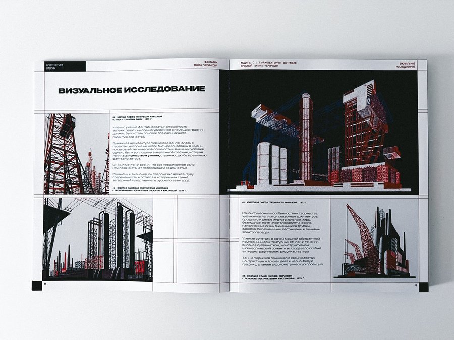 Разворот 2 модуля. Концепция выставки «Архитектура Утопии: фантазии Якова Чернихова»