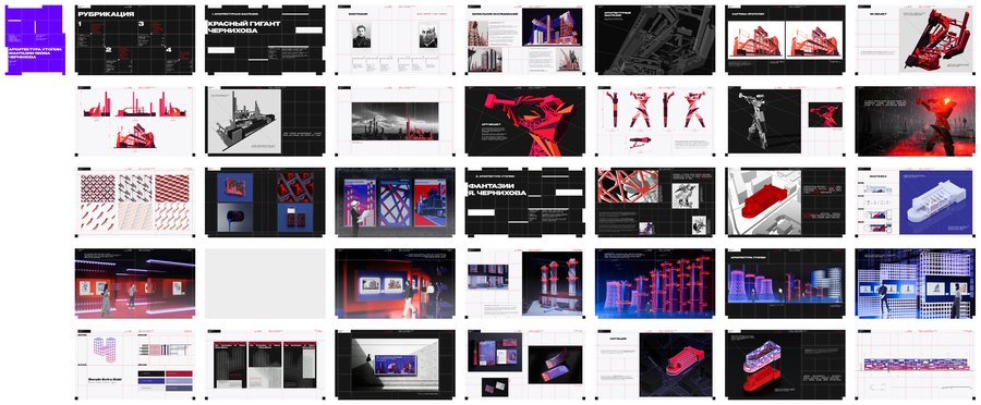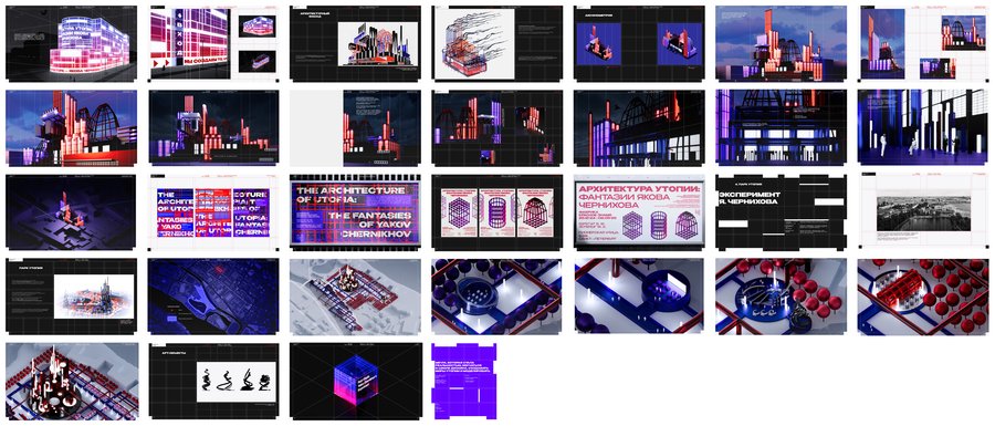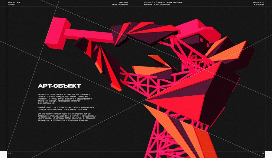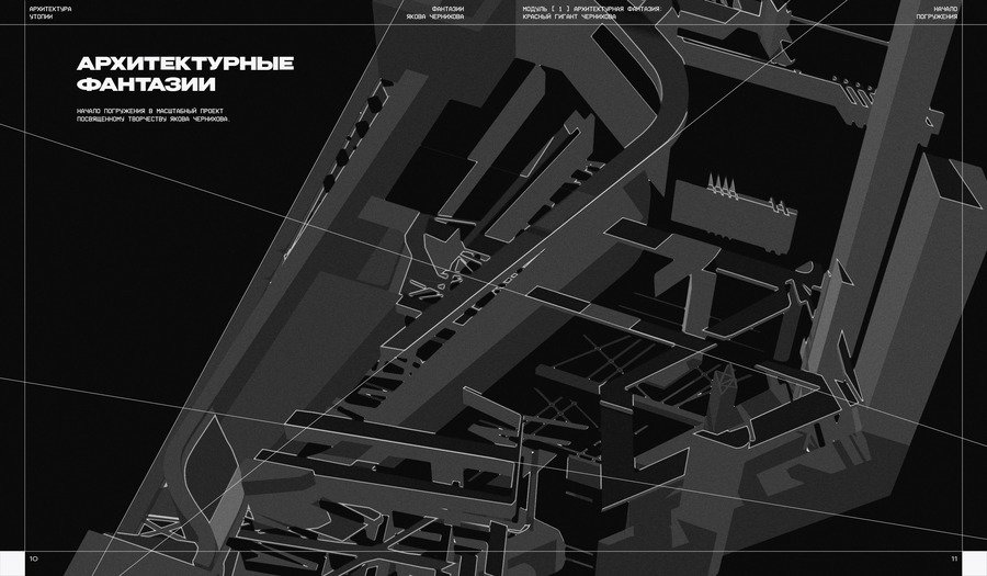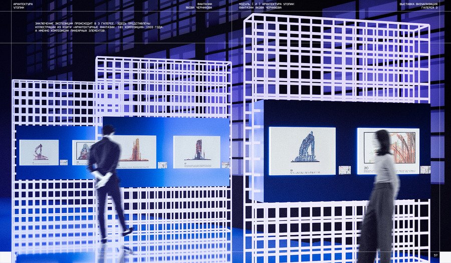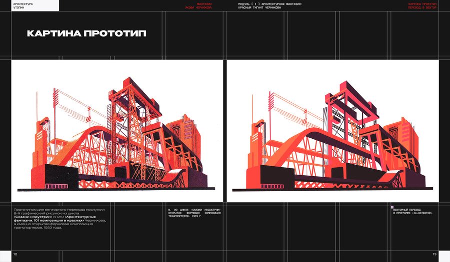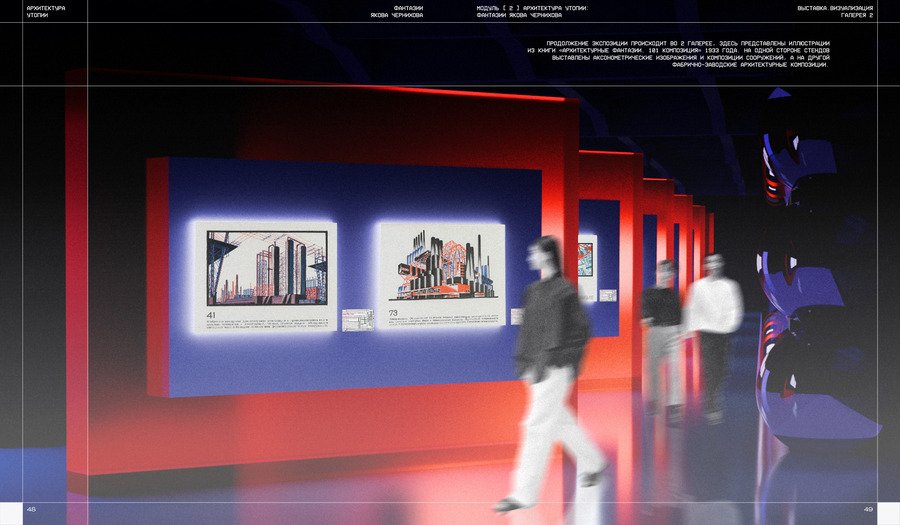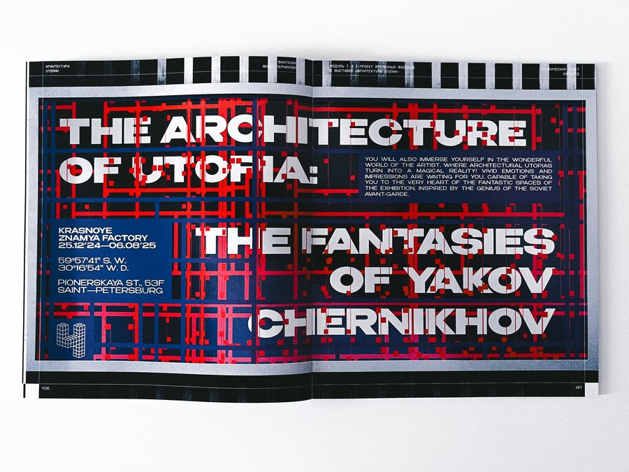 Разворот 2 модуля. Концепция выставки «Архитектура Утопии: фантазии Якова Чернихова»