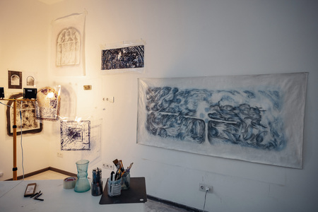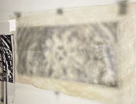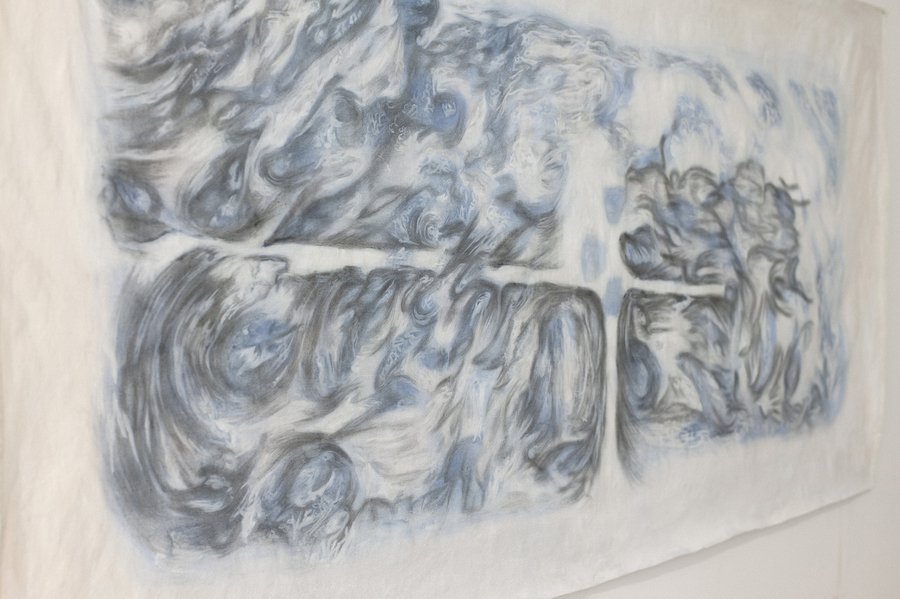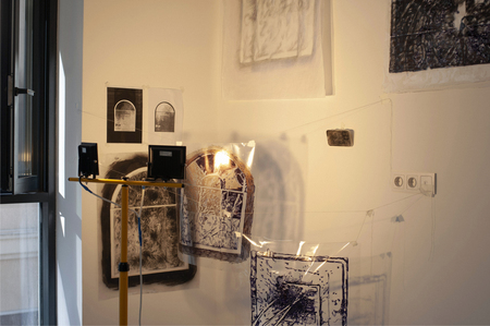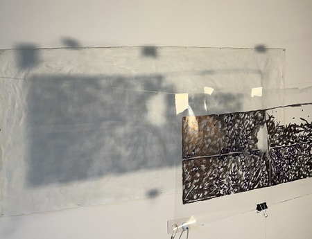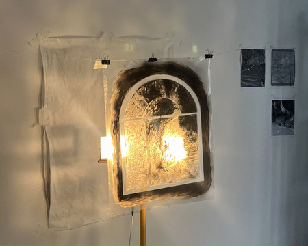 «Не убегающие тени» — это результат экспериментов с графикой в рамках резиденции Московских Мастерских от АКИ. Моя временная мастерская представляла собой пустое пространство с белыми стенами, где я могла наблюдать за изменчивыми силуэтами теней, возвращаясь к ощущению внутреннего времени, его постоянству. Графика и время, движение образа, в чем оно? В стремлении к потенциальной завершенности или в состоянии перехода, застревании между плоскостями, материалами и поверхностями. В этой серии я решила поработать с образами на стыке состояний, между ускользанием и присутствием, невесомостью и ощутимостью, подвижностью и статикой.
