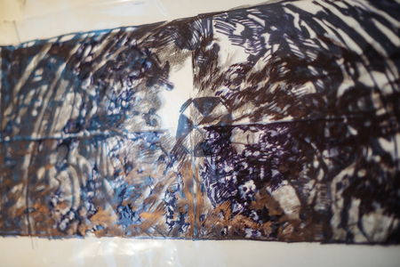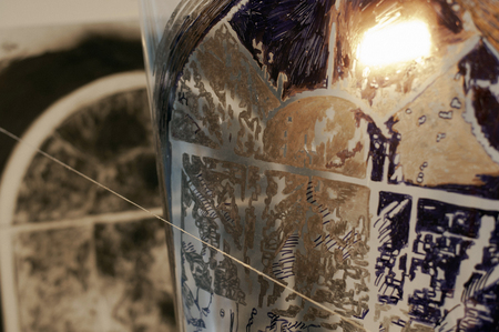 Движение к образу начинается с фотографии, которую я перевожу на прозрачную пленку вручную, покрывая разными материалами участки, которые будут отбрасывать тени. Затем на пленку направляется свет, и возникающий рисунок светотени фиксируется уже на графической поверхности.