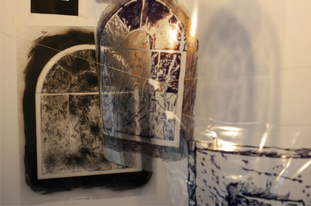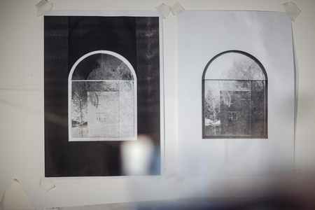 Мотивами для графических экспериментов стали фотографии и цифровые коллажи с окнами и другими фрагментами пространств из моих архивов.