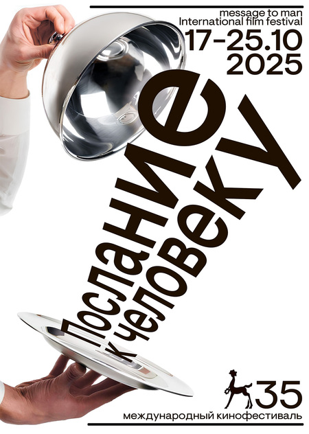Ключевой элемент постера — словосочетание «послание к человеку» — застигнут в момент динамичного рождения, мощного и неожиданного выброса энергии.