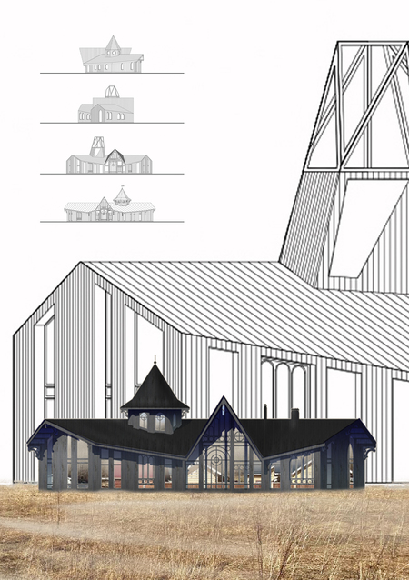 Основной задачей проекта было совмещение актуальных тенденций деревянного домостроения и «классических» дач первой половины ХХ века, чтобы удовлетворить запросы креативной семейной пары. Особое внимание уделялось рисовке плана и посадке здания на участке, создание цельной объёмно-пространственной композиции въездной группы, гаража, жилого дома и террасы. Были учтены множество факторов технического задания: от местоположения здания на участке и вида из окон до удобства приготовления барбекю на террасе. Было разработано большое количество эскизных стилистических вариантов фасадов.
