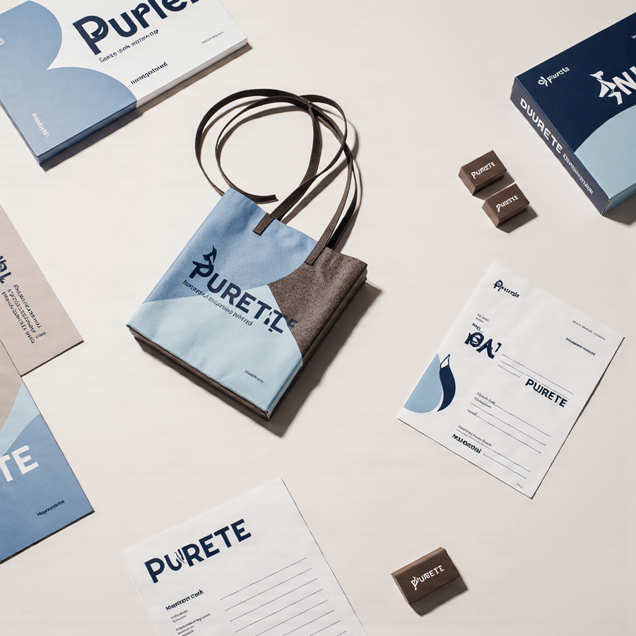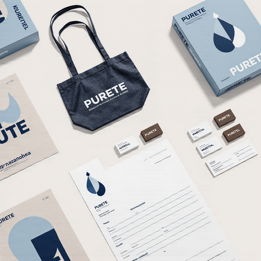 генерация носителей на основании другого изображения в krea, но с моим логотипом: make mockup like in the second picture with logo on the first image, on mockup change all text to Purete