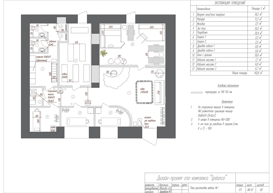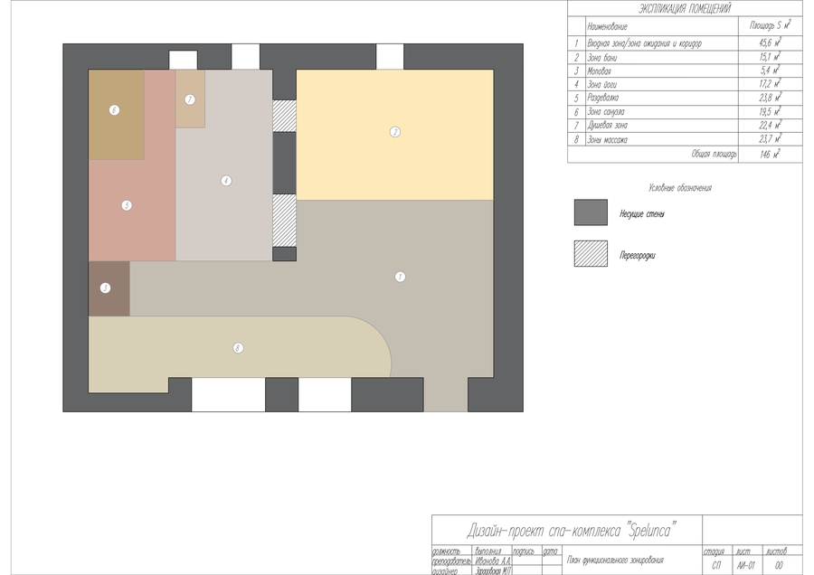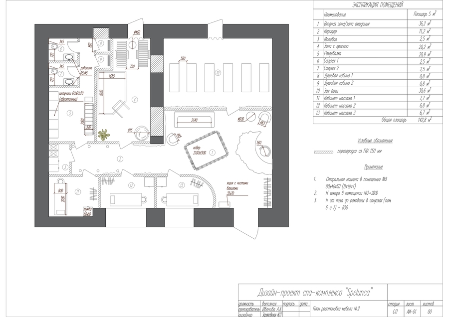 Техническое задание Место: Отель «Magic Harp» (1 этаж), г. Москва ЦА: 18+, жительницы отеля, туристки Функциональное зонирование: Входная зона, зона ожидания и чаепития, баня с купелью, кабинеты для массажа, раздевалка, санузел, моповая