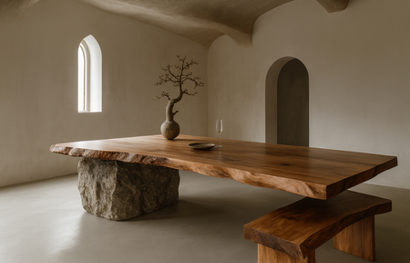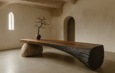 VELD is furniture at the intersection of object and architectural design. Large forms made of solid wood and natural stone with minimal processing work not as decor, but as material accents of the space. Each object is a monolith that sets the rhythm of the interior and gathers life around itself.