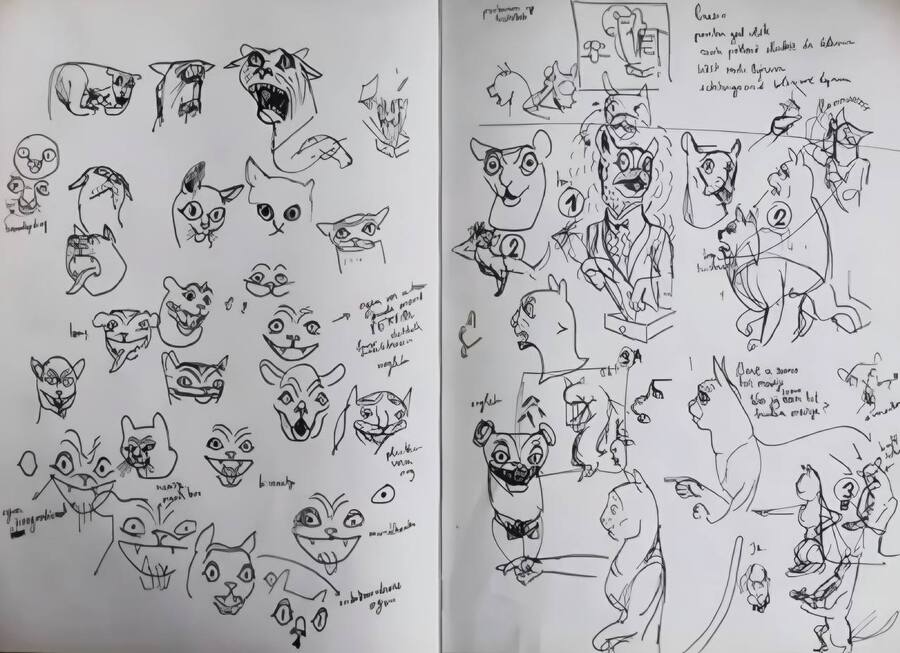Лицо и тело Пантеры всегда меняется, это автоматически произошло ещё в набросках. У Брехта Эвенса не было какой-то конкретной формы для него, поэтому каждый скетч персонажа подстраивался под его речь. Фразы Пантеры тесно связаны с его формой, он извивается не только в своих словах, но и внешне. Удивительно то, что этот момент был сделан без намерений, произошёл спонтанно, но Брехт Эвенс сохранил эту черту Пантеры, так как ему показалось это очень важной деталью. Животное врет не только через собственные слова, но и через свою визуальную составляющую.