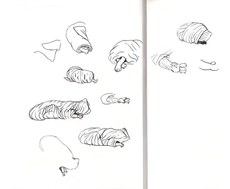 Сам художник говорил про эти наброски, что в них есть свое очарование, но они бы были менее свободные, нежели итоговая работа, ведь в них нет какой-то естественености, что сильно бы повлияло на образ главного героя.