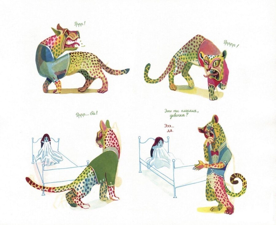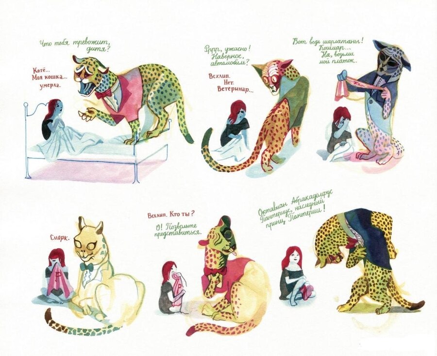Примечательно, что уже в этот момент нам, как читателям, становится понятно, что Пантера не так прост, ведь он ведет себя очень подозрительно: постоянно подстраивается под то, чтобы его рассказ был «удобным» для девочки, а если что-то Кристине не нравится, то Пантера сразу же меняет свои слова, ссылаясь на то, что ошибся.