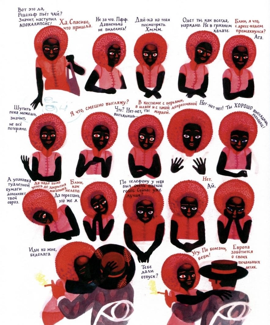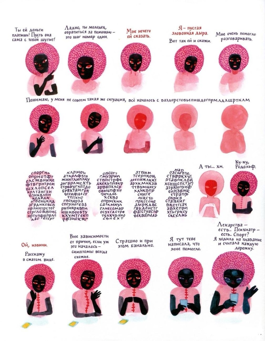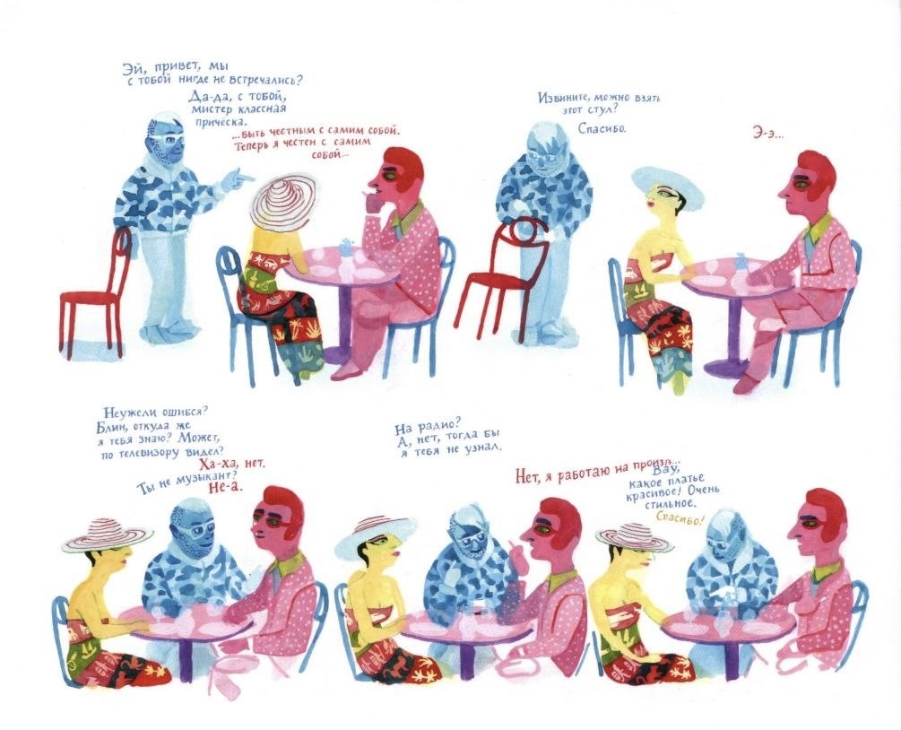 Таким образом, визуальный язык Брехта Эвенса — это уникальная комбинация цветовых пятен и линий, а также использование пустого пространства, необычного леттеринга, что вместе создает сильное эмоциональное влияние на читателя.