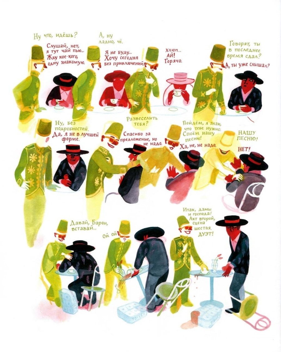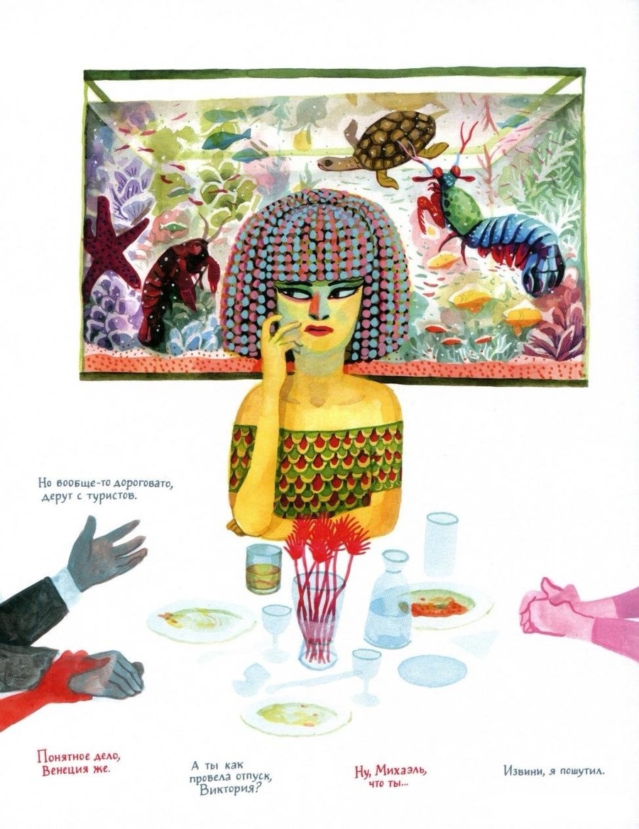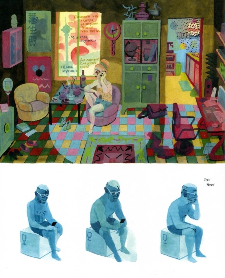 Есть ощущение, что и сама книга врет, играет с нами. Такое возможно передать лишь в комиксе. Например, сам формат книги горизонтальный, он отсылает читателя к образу классического детского альбома, завлекая нас еще и своим ярким колоритом, но в дальнейшем мы понимаем, что это далеко не добрая детская история.