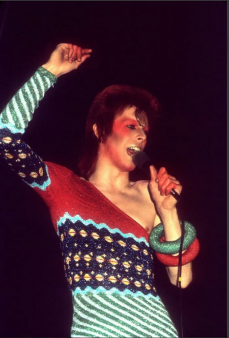 Одновременно формировалась идея андрогинности и театральности — благодаря Дэвиду Боуи, Марку Болану, Брайану Ферри. Границы между мужским и женским, сценическим и повседневным начали растворяться.