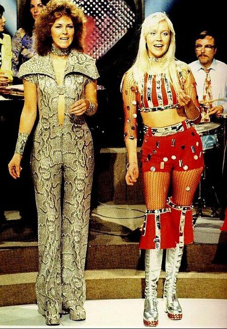 После знаменитой победы ABBA родился новый образ. С этого момента широкие расклешенные брюки, ботинки на платформе и комбинированные силуэты стали определяющей эстетикой группы.