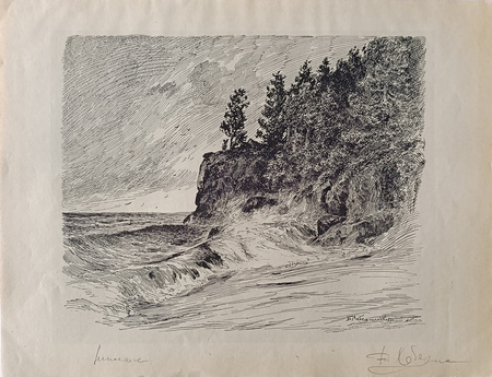 В работе «Ненастье» штриховка выполняет важную функцию — передает динамику в композиции, направление этих линий показывает нам, что погода штормовая: небо пасмурное, а волны беспокойные.